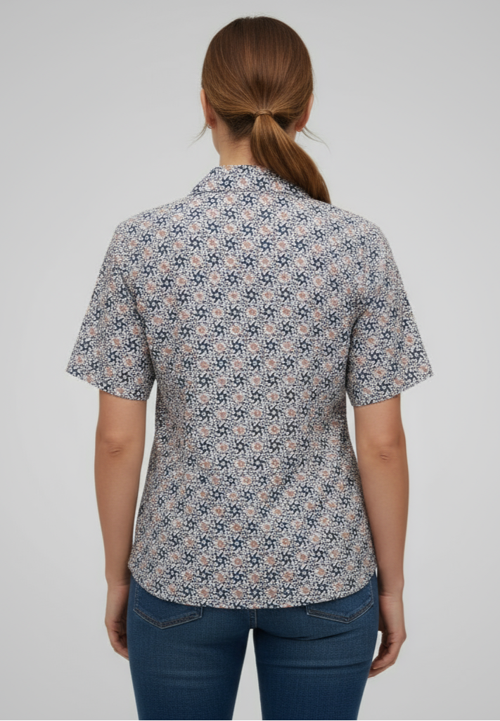 Make a splash with Coral Crest, a Cuban-collar charmer that feels like a seaside fiesta stitched into cotton. With swirling navy motifs dancing like ocean tides and coral-red bursts adding a cheeky pop, this shirt is where coastal energy meets effortless cool. The satin weave gives it that polished weekend gleam, while the relaxed resort fit keeps you breezy from boardwalk strolls to cocktail clink