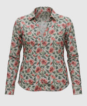 Breathe life into your wardrobe with the Crimson Meadow, where vibrant scarlet florals dance across a soft grey canvas like wild blooms swaying in the breeze. The V-shaped neckline paired with a spread collar adds a touch of elegance, while the premium cotton-viscose slub fabric makes it light, airy, and ready for anything from leisurely brunches to evening strolls. Equal parts lively and refined, this shirt is your go-to for days when you want to stand out without trying too hard.