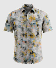 Not all rebels wear leather. Some wear abstract grids and call it fashion. This shirt is a playful paradox: artsy yet structured, bold yet wearable. With its painterly blotches, crosshatch textures, and earthy undertones, it’s basically what would happen if your sketchbook grew a collar and decided to party. Whether you're gallery hopping or sipping cold brews on a rooftop, this one’s made to make “I just threw this on” look like a carefully curated vibe.