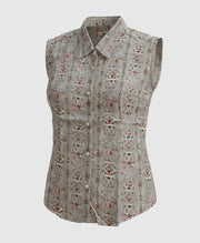 Channel vintage romance with a modern edge in the Velour Flora. With its muted beige canvas splashed with delicate floral motifs in soft pinks, greens, and reds, this sleeveless stunner is equal parts timeless and contemporary. The slim fit and spread collar keep the look sharp, while the curved hemline adds an effortless flow. Lightweight and versatile, it’s a piece that feels just as perfect for sunlit strolls as it does for evening café moments.